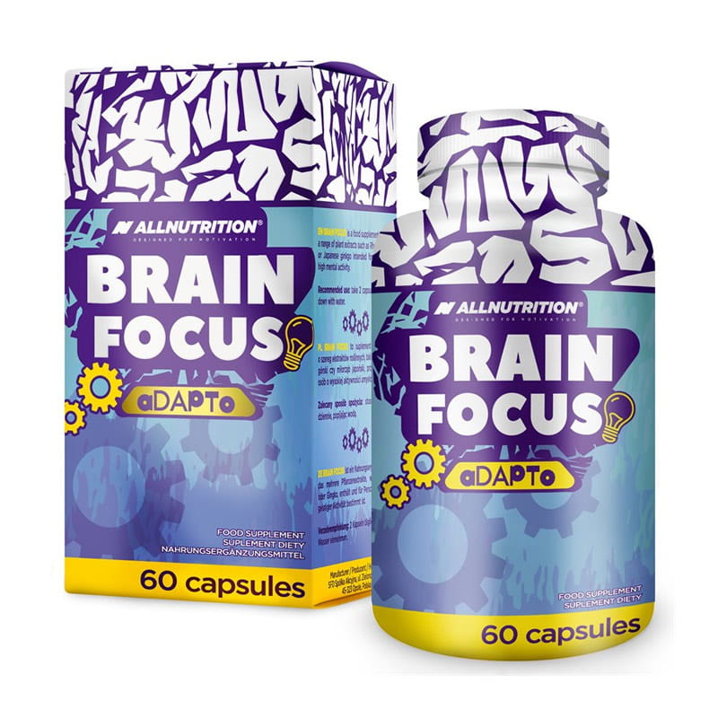 ALLNUTRITION Brain Focus to suplement diety w formie kapsułek, stworzony z myślą o koncentracji i wsparciu funkcji poznawczych. Zawiera naturalne ekstrakty roślinne i adaptogeny, takie jak różeniec górski, miłorząb japoński oraz bakopa drobnolistna.